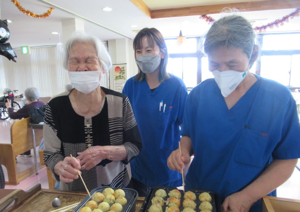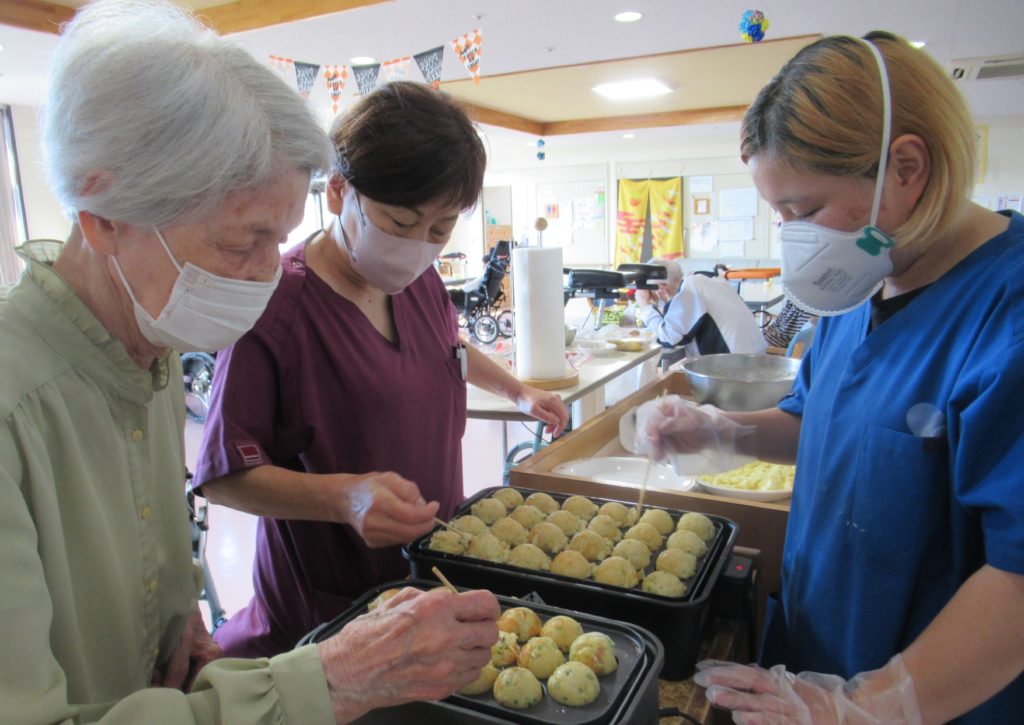 具材の準備や生地作りをしていただき、準備が出来たら火傷に注意しながらたこ焼き器を使って焼いていきます♬