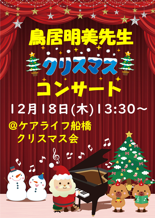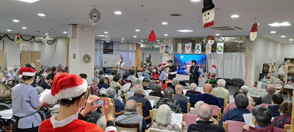 とても素敵なクリスマス会は翌日になっても、利用者様から、「昨日のコンサートは楽しかったわ」や「ケーキがとても美味しかった」などの感想をいただきました。また来年のクリスマス会もお楽しみに!職員が張り切って企画いたします。