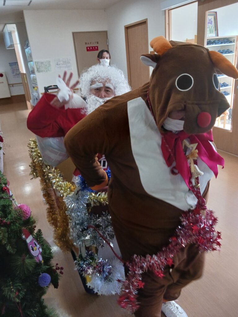 今日は待ちに待ったクリスマス会! 施設内に鈴の音が響き渡り、サンタと元気なトナカイが