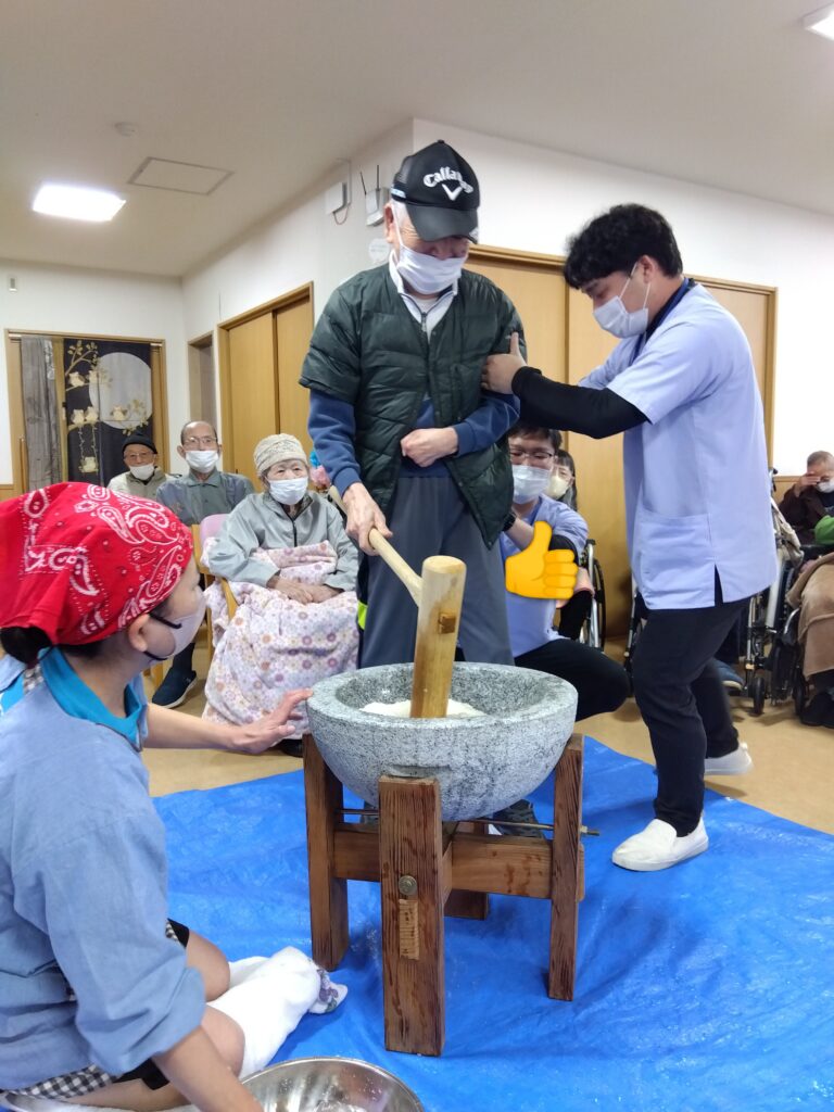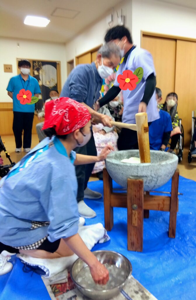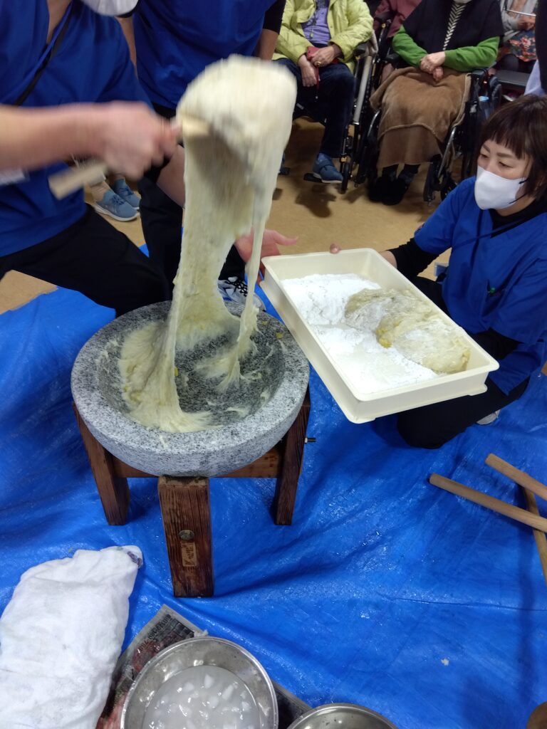 職員・ご利用者様・ご家族様も手伝ってくださり、早い段階でお餅になりました!