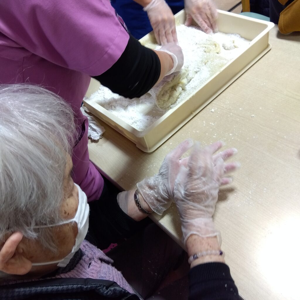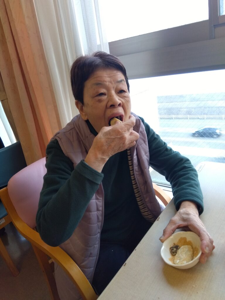 さて、出来上がった芋餅を利用者様と一緒に一人分ずつ分けていきます!