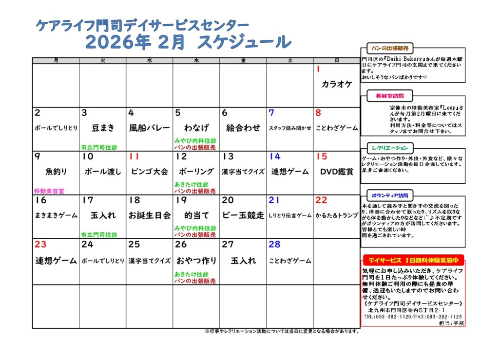 こんにちは、ケアライフ門司です(*^-^*)