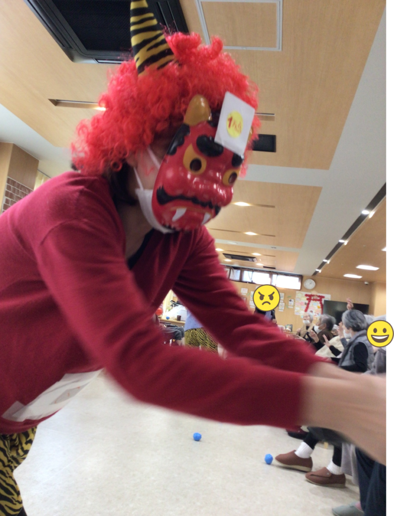 鬼に当てようと真剣の表情や、鬼のお面を被り、皆さんのとてもいい笑顔が見れました☺️