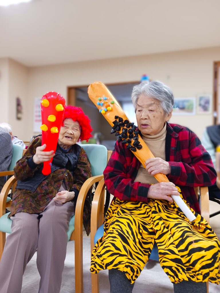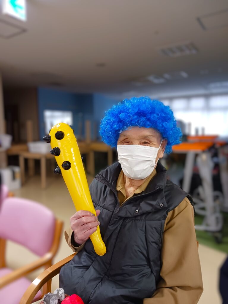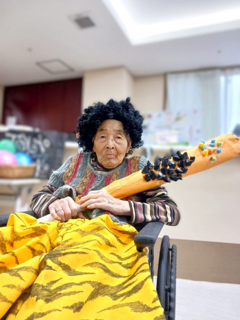 利用者様もカツラ・鬼パンツ・金棒セットで鬼に大変身!