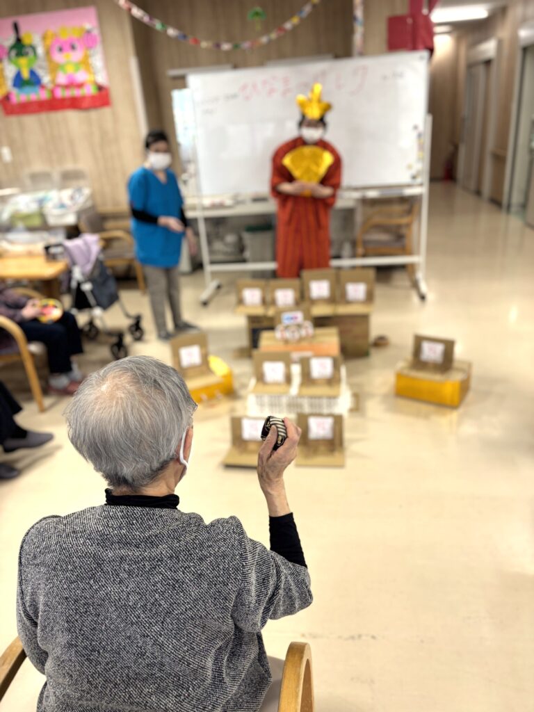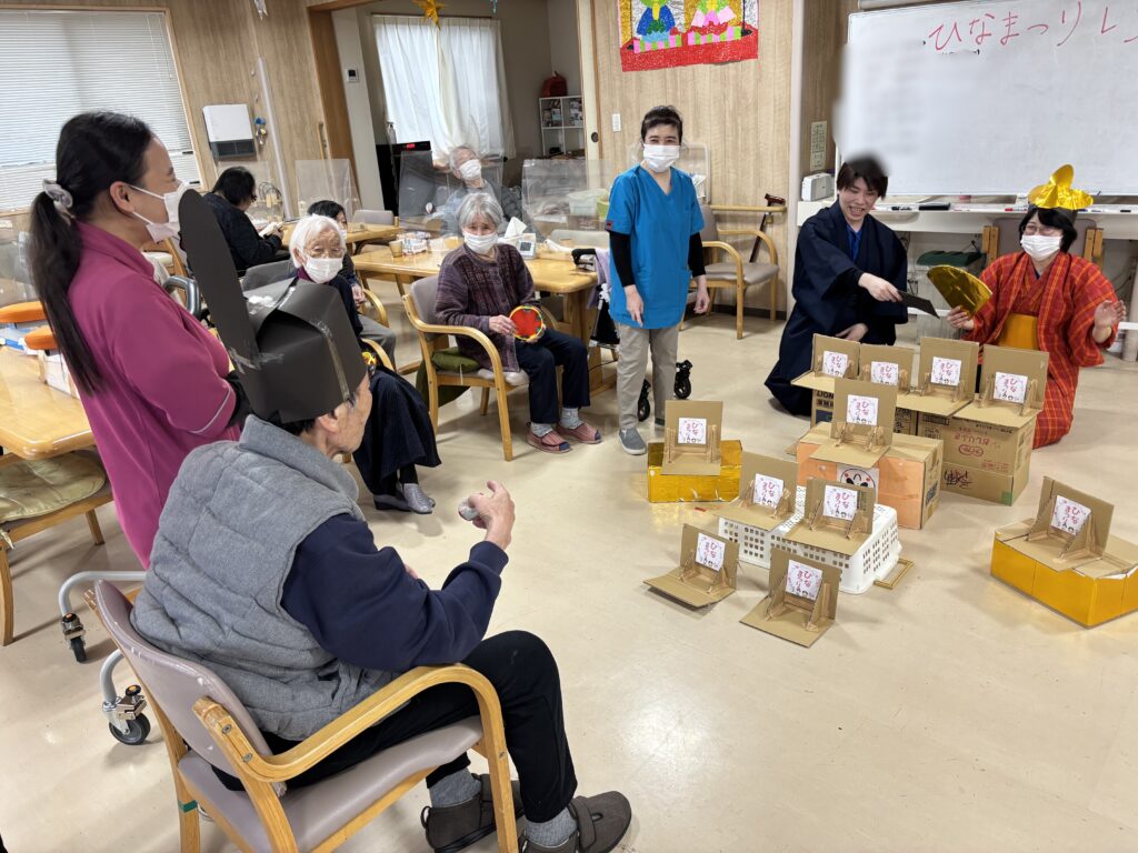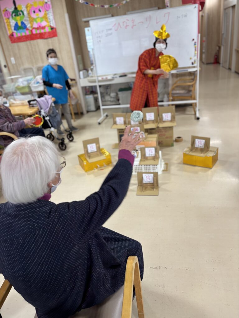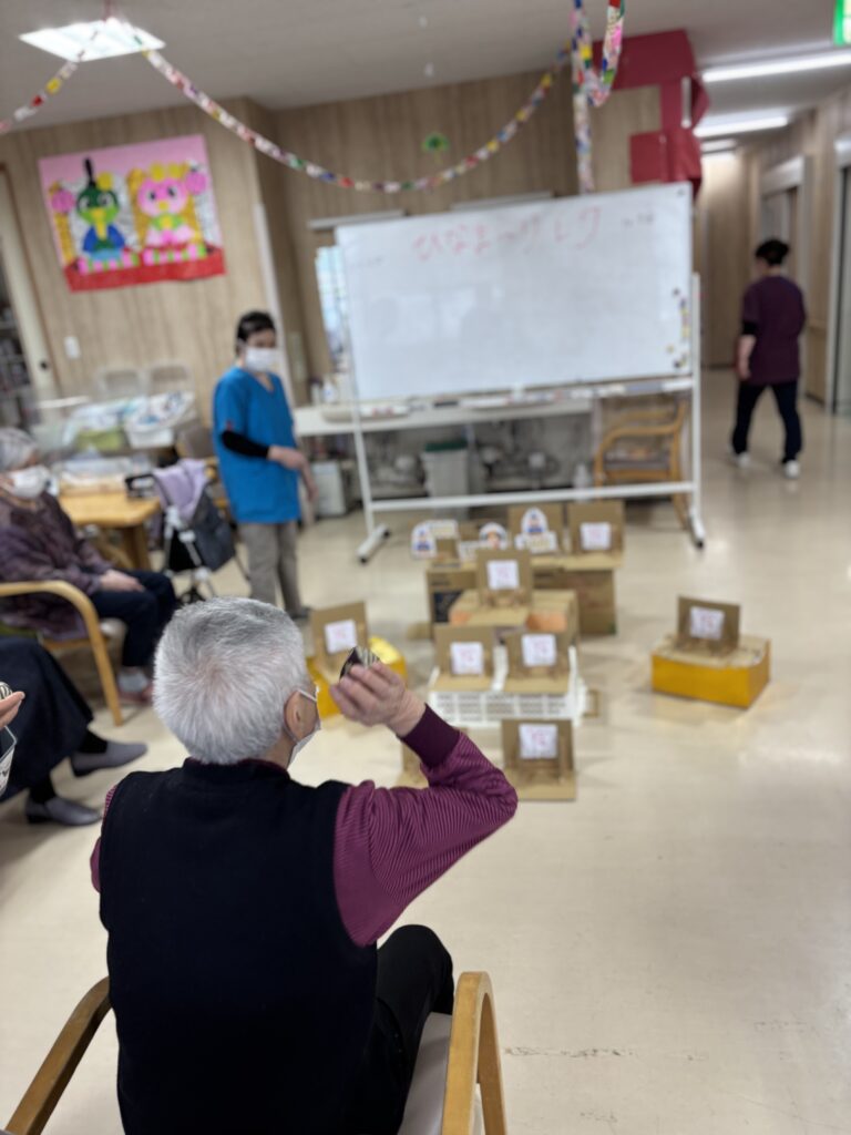 ケアライフくろい ひな祭りレク ケアライフくろいブログ 2026年03月16日 こんにちは! ケアライフくろいです! 3月に【ひな祭りレク】をしました🎎 ひなあられお手玉を投げ、当たるとひっくり返ってお内裏様やお雛様が現れました! 合計高得点を連発され、その度に喜びの舞を一緒に踊りました💃