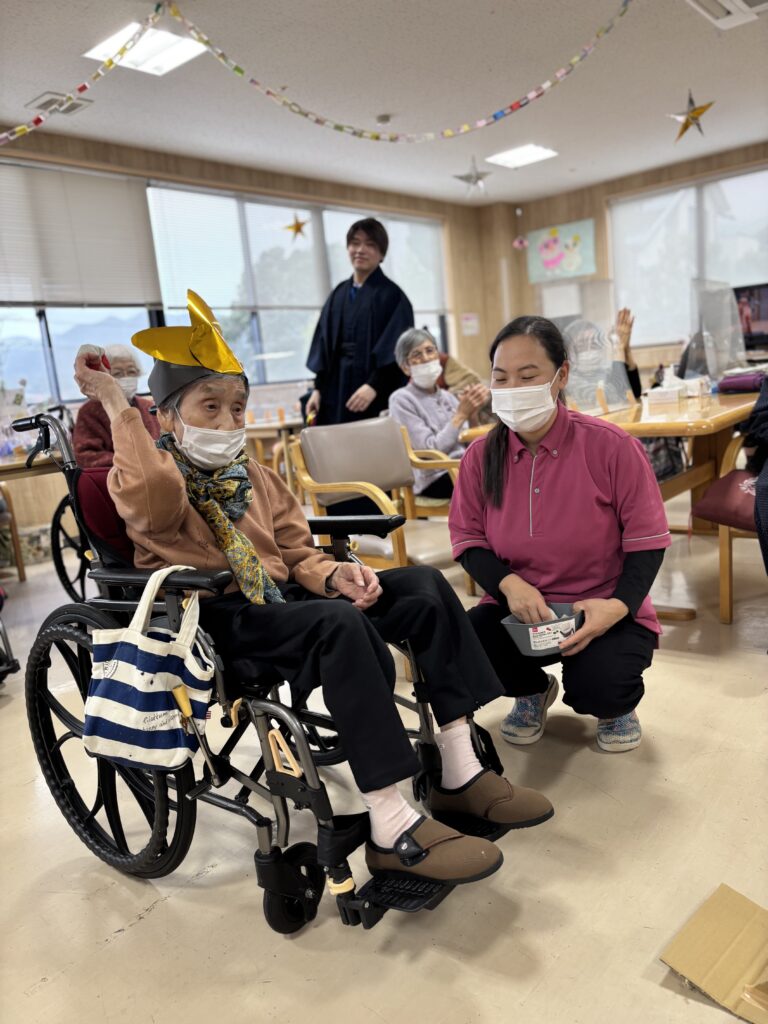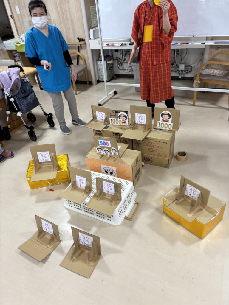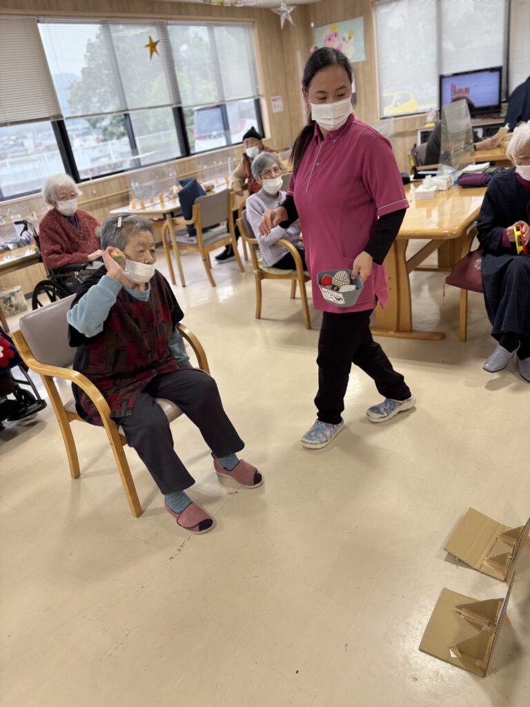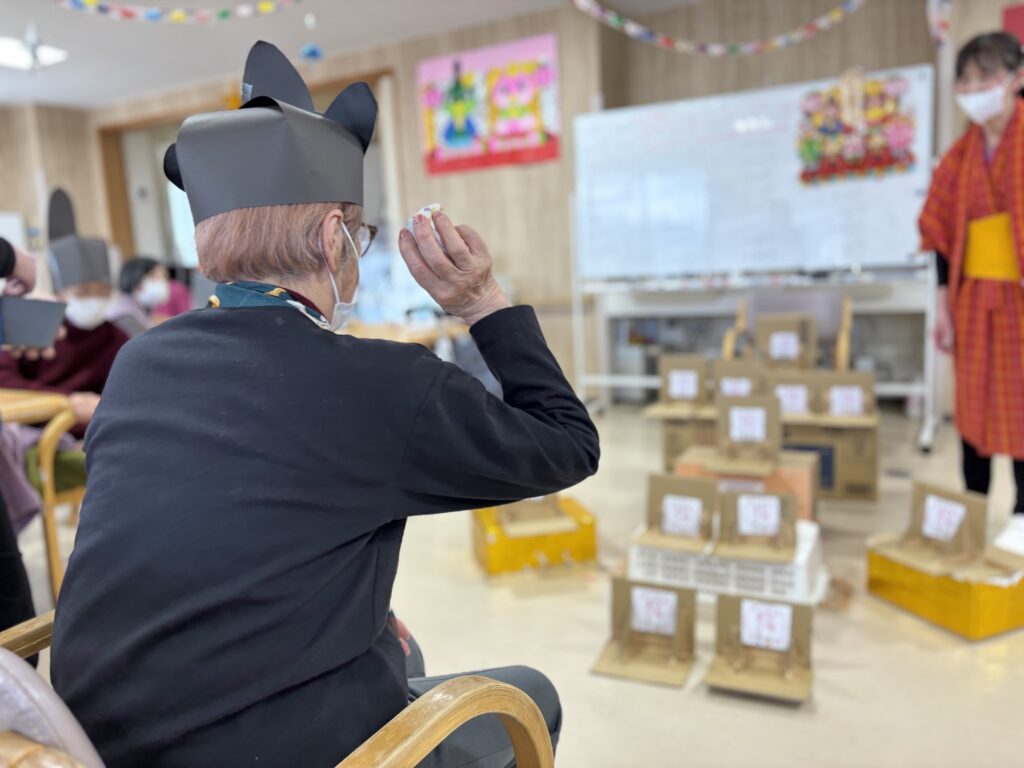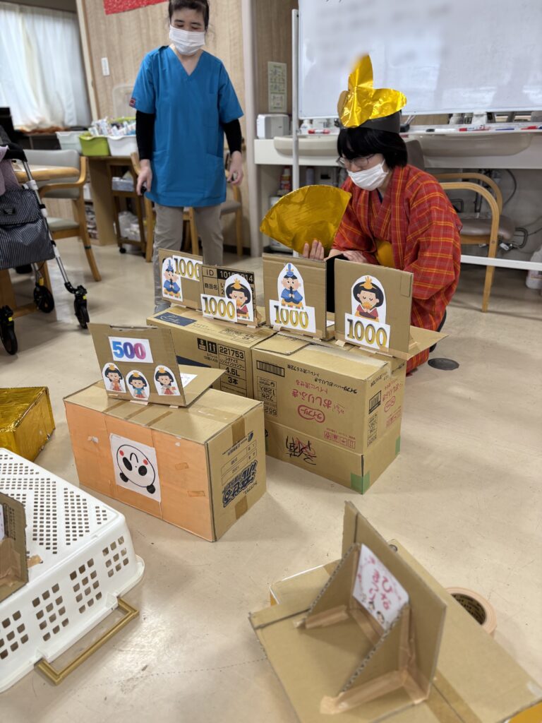 ケアライフくろい ひな祭りレク ケアライフくろいブログ 2026年03月16日 こんにちは! ケアライフくろいです! 3月に【ひな祭りレク】をしました🎎 ひなあられお手玉を投げ、当たるとひっくり返ってお内裏様やお雛様が現れました! 合計高得点を連発され、その度に喜びの舞を一緒に踊りました💃