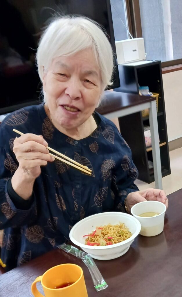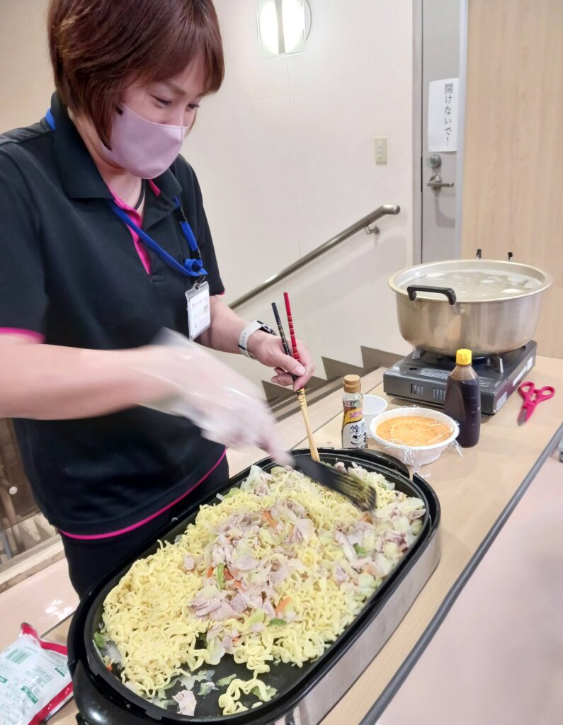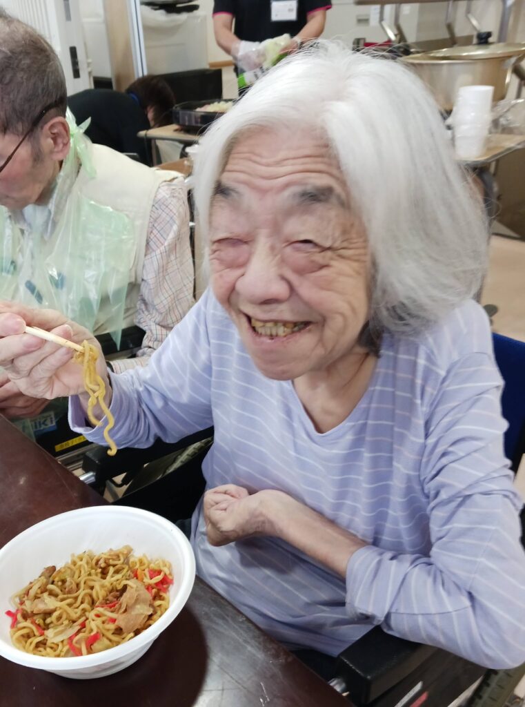 副施設長も笑顔で手作り焼きそばを調理しています。
