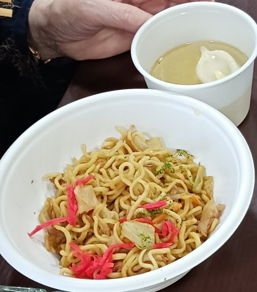 手作りランチメニューは特製焼きそばと水餃子のスープです!