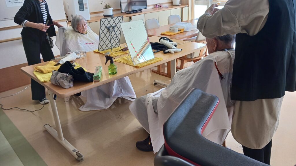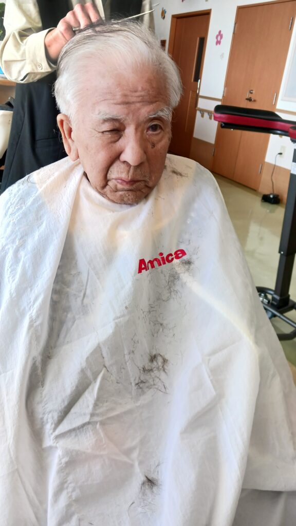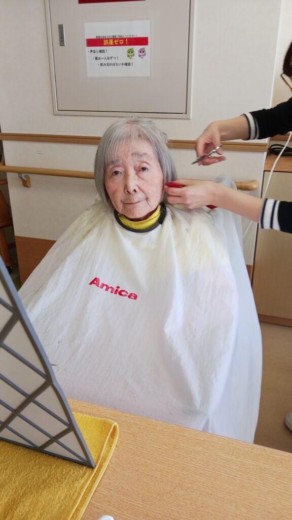 ケアライフ綾羅木 美容室の日😊 ケアライフ綾羅木ブログ 2026年04月15日 ケアライフ綾羅木です。 ケアライフ綾羅木には毎月1回アミカ美容室の訪問サービスがあります🤗 カット・カラーもOKで顔剃りもあります。 終わったの髪の毛はさらさらです🎶