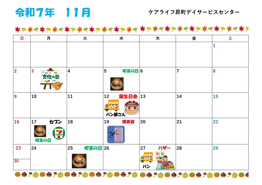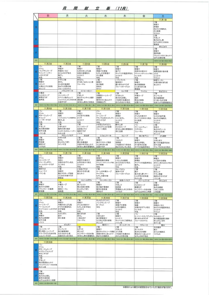 ケアライフ昇町 11月行事カレンダー&献立表