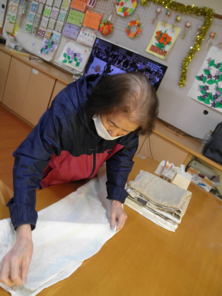 「洗濯物全部持っておいでー。」「全部畳んじゃるから。」と