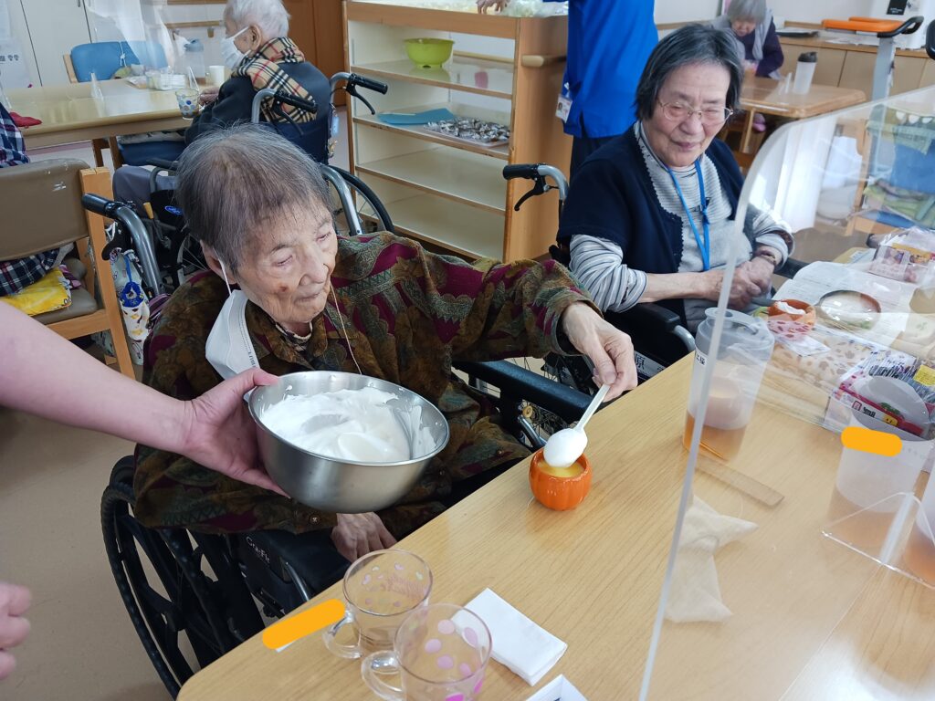 ケアライフ綾羅木 おやつレク🤗 ケアライフ綾羅木ブログ 2025年11月28日 ケアライフ綾羅木です☺️ おやつレクで『プリン🍮&スイートパンプキン🎃』を作りました~🎵 さすがです!手先が器用🥰!!きれいに容器に入れてくれました! ホイップの入れ放題!好きなだけプリンの上にど~ぞ~🤗 皆様に大変喜んでいただきました🤩 次回のおやつレクは何にしようかな~と考え中です!乞うご期待!😉