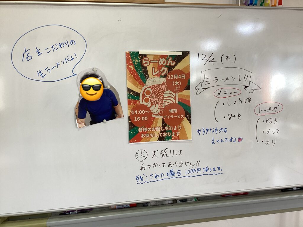 デイサービスでは温かいラーメンを利用者様へ提供しました✨