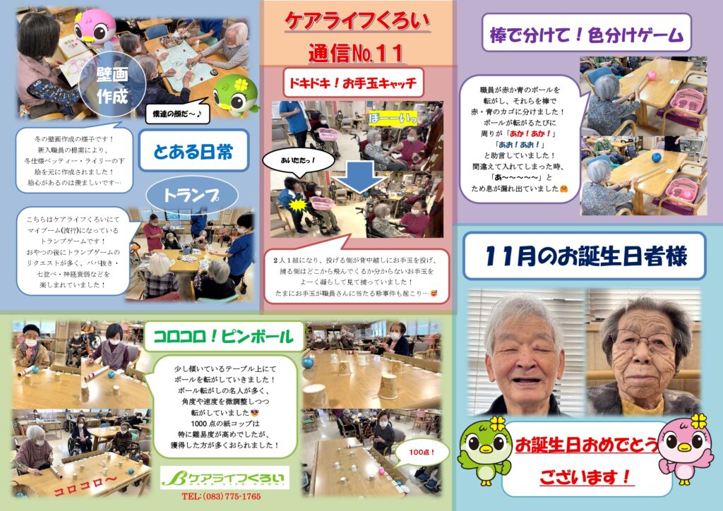 ケアライフくろい通信№11をUP致しました!