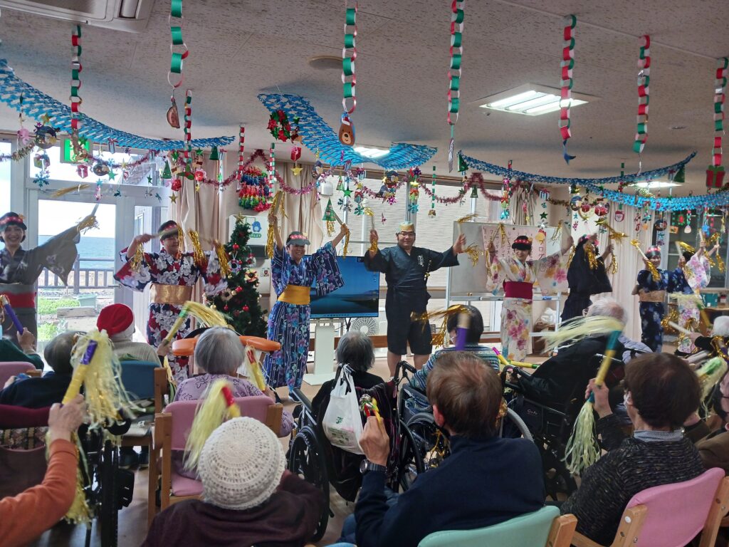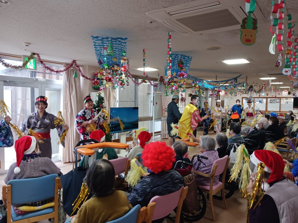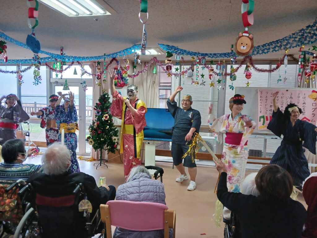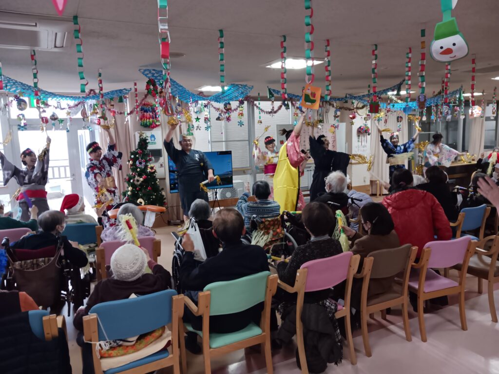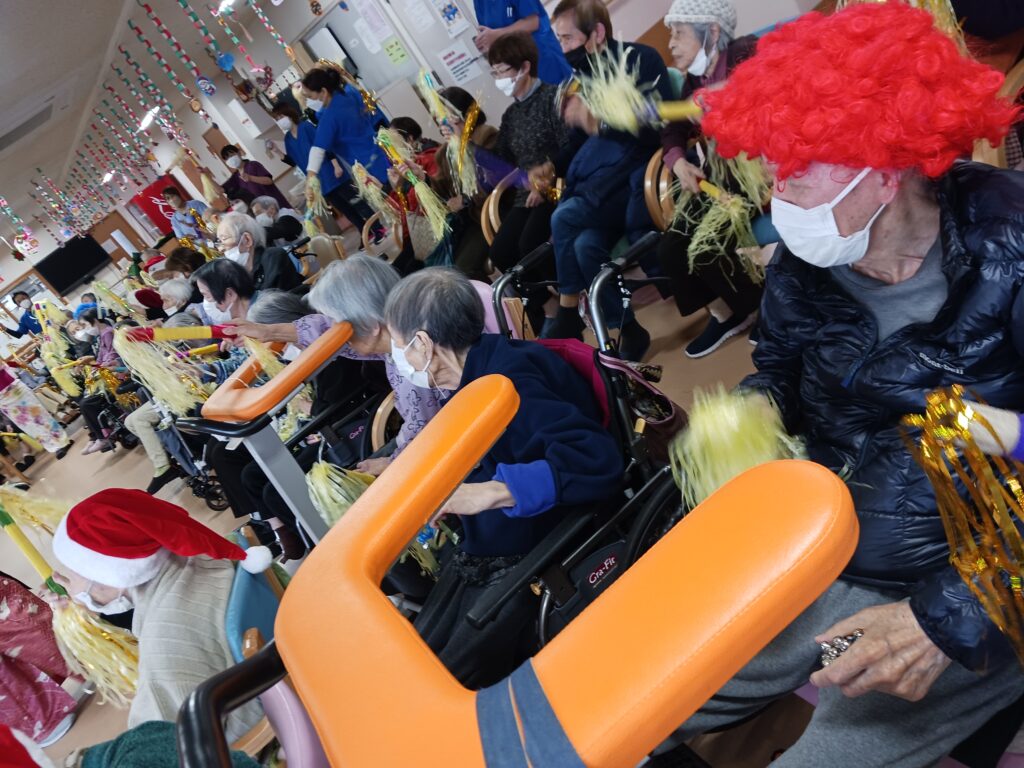 ケアライフ綾羅木 クリスマス会🎅② ケアライフ綾羅木ブログ 2025年12月31日 クリスマス会の様子・パート2です😄 皆様楽しみに待っていました~! マ・ツ・ケ・ン・サ・ン・バ~~~~~🎵 音楽が鳴ると皆さまの拍手で登場~~~ マツケン棒を大きく振ってくれて出迎えてくれました💕 練習の時から棒を振ってくれて盛り上げてくれました! オーレイッ!! ほんっとに、ほんっとに大盛況でした~🤗