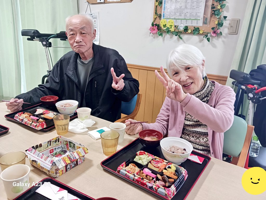 元旦の昼食は赤飯/雑煮風/お祝い膳盛り合わせ でした!