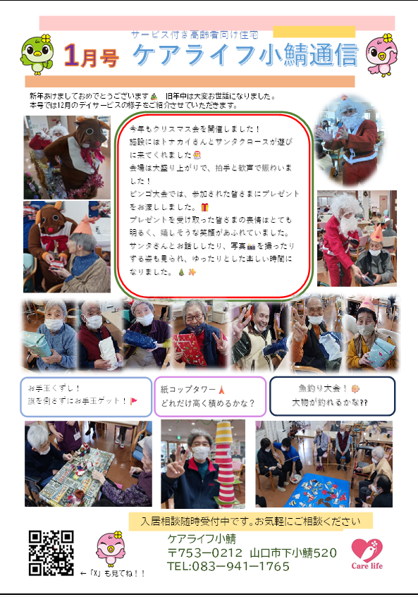 ケアライフ小鯖 施設新聞1月号 2026年01月06日 いつもブログをご覧いただき、ありがとうございます。本日、「施設新聞 1月号」をアップしました📄 今年も、施設での楽しい出来事をたくさん発信していきます🎍