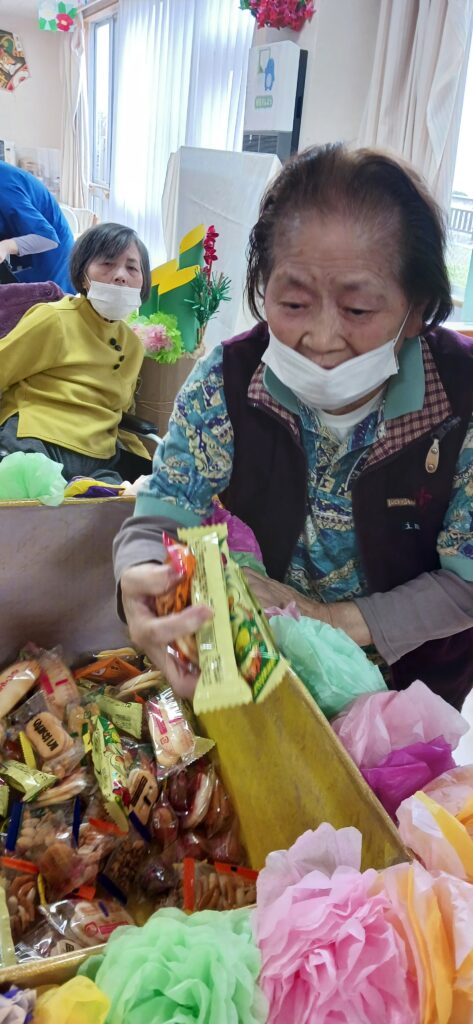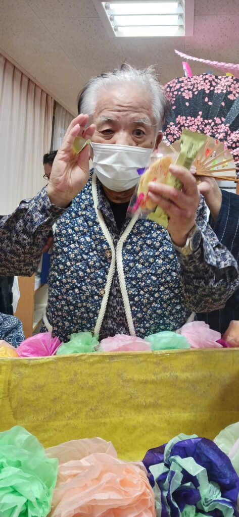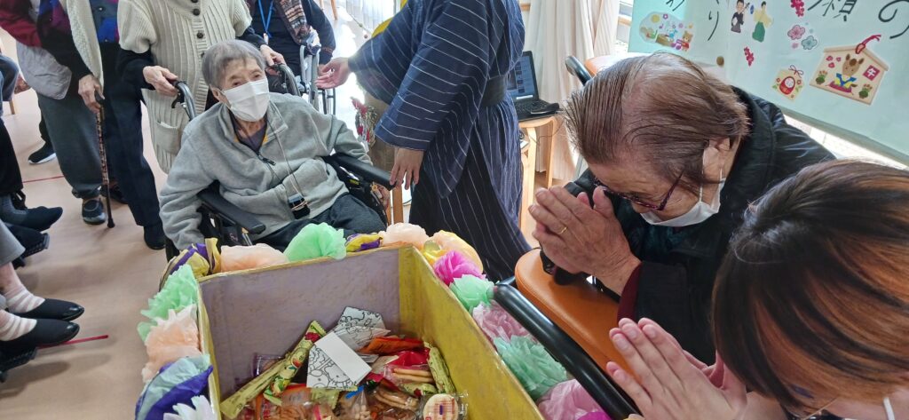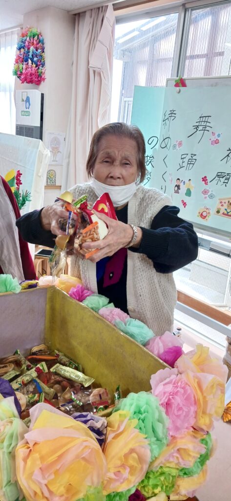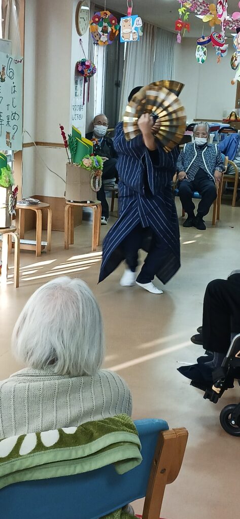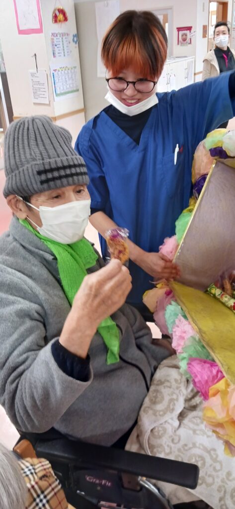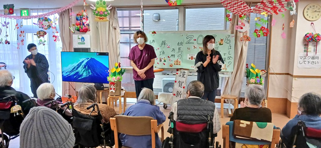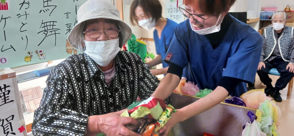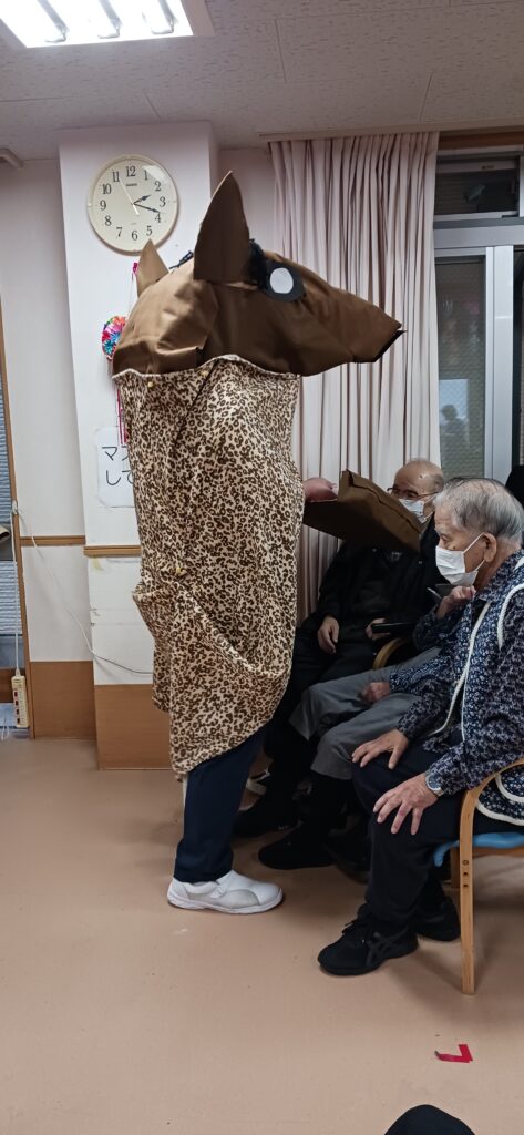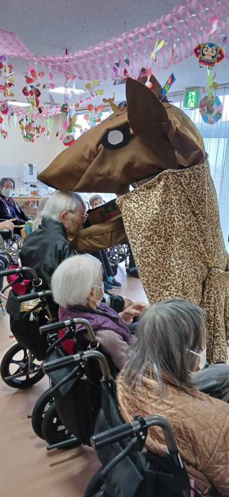 ケアライフ綾羅木 お正月イベント🎉 ケアライフ綾羅木ブログ 2026年01月13日 ケアライフ綾羅木です🤗 1月7日お正月イベントを開催! 大きな🐴が現れて、ご利用者さまの頭をカプッ👀 獅子舞にあやかって馬舞!!「噛みつく」と「神が付く」の語呂合わせで縁起が良いとされます。 体は何故かヒョウ柄ですが・・・(笑) 馬なのです。。。 さ~て、次はお菓子のつかみ取り大会🍩 沢山取れますように🤩 職員の「舞踊」で締めくくり👘 圧巻の舞でした! 今年もいいことがありますように🤗