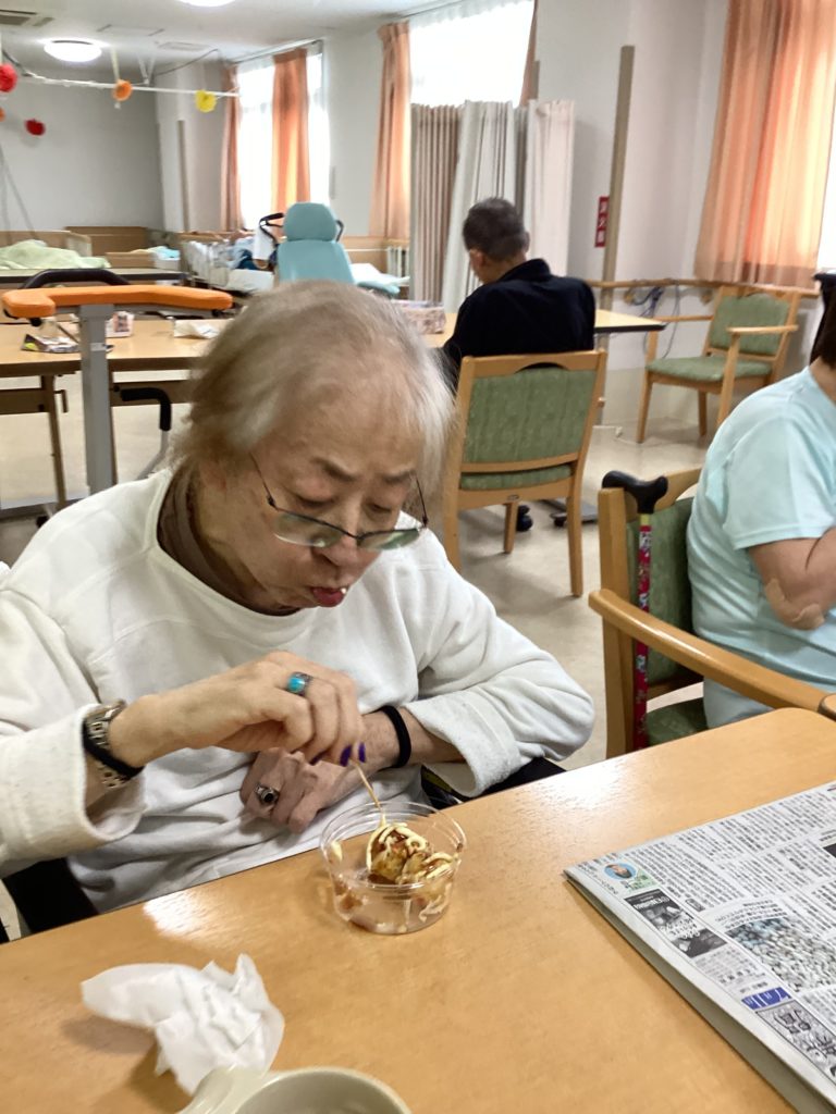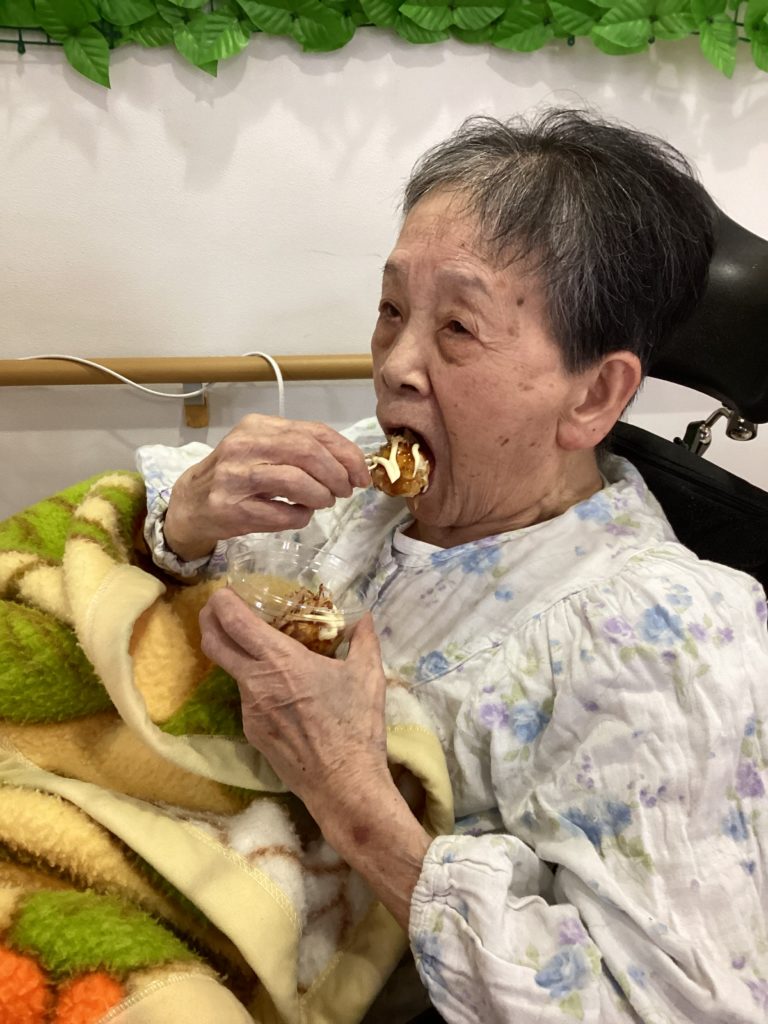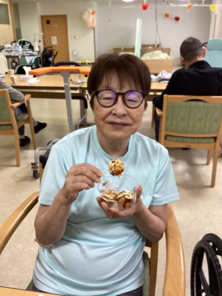 職員が焼いたたこ焼きをとても美味しそうに召し上がっていただく様子が見られました🎵