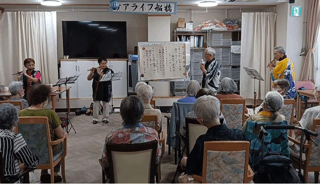 毎月恒例の船橋しの笛の会の皆さんも、お盆期間にもかかわらず来て下さいました。伝統的な笛の音色が心地よいです。