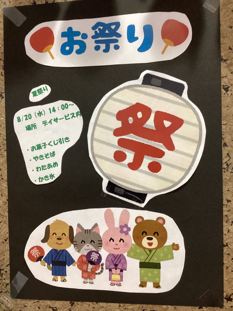今月後半には楽しみな納涼祭があります。そして来月は敬老会イベントも。催し物も特別食も、楽しみがいっぱいです。