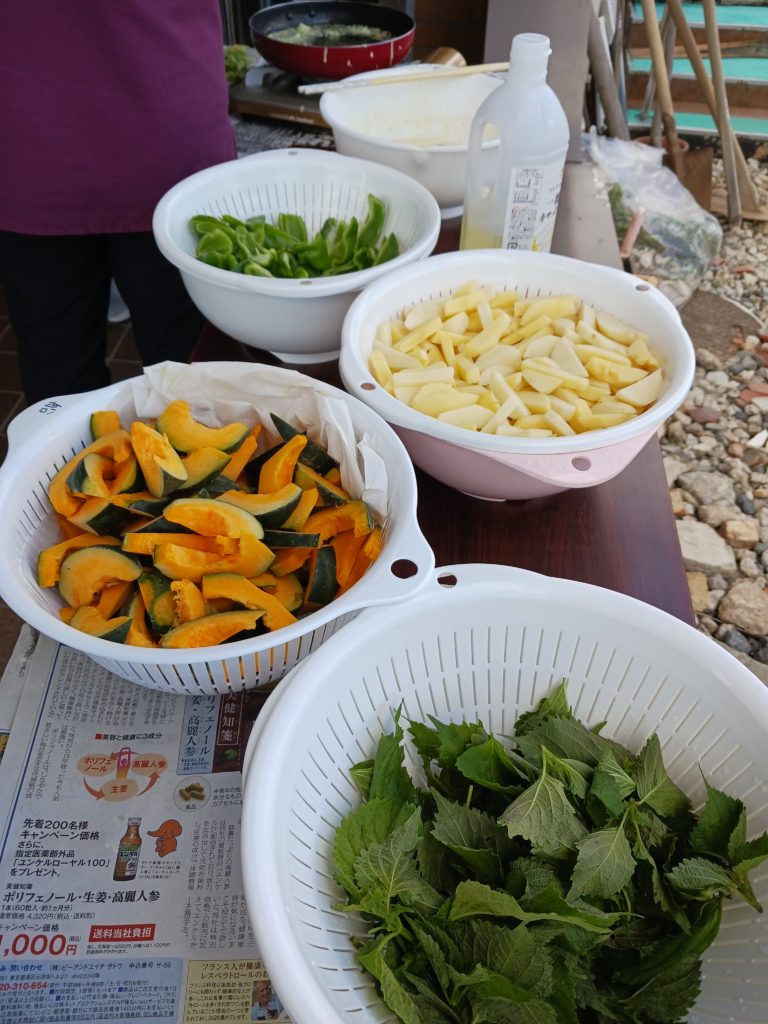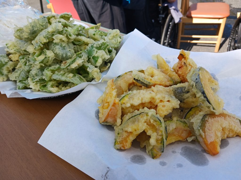 庭の畑でとれた野菜たちを天ぷらにして皆様にも食べていただきました✨️