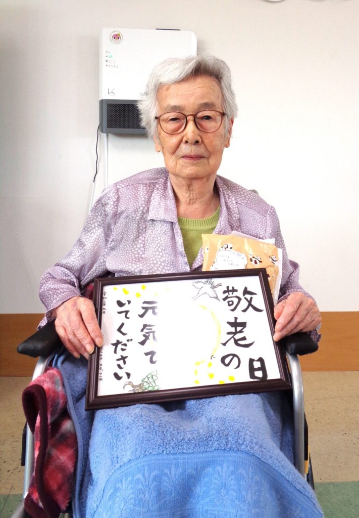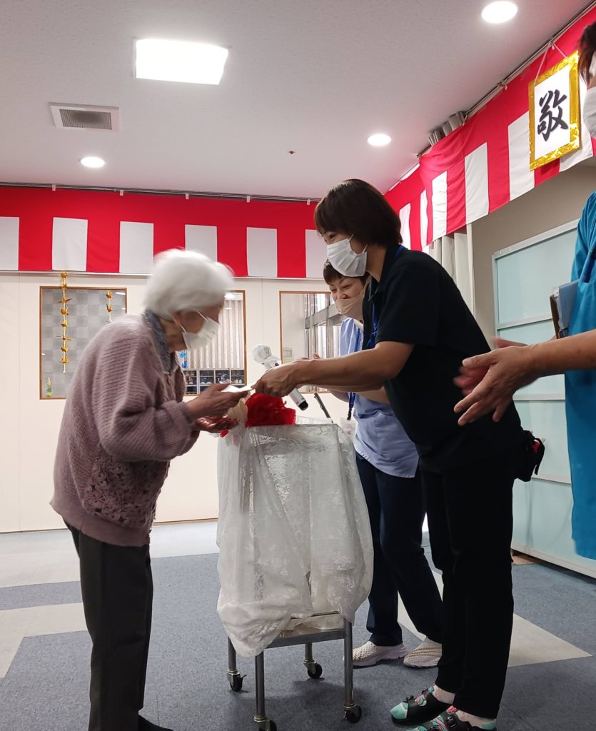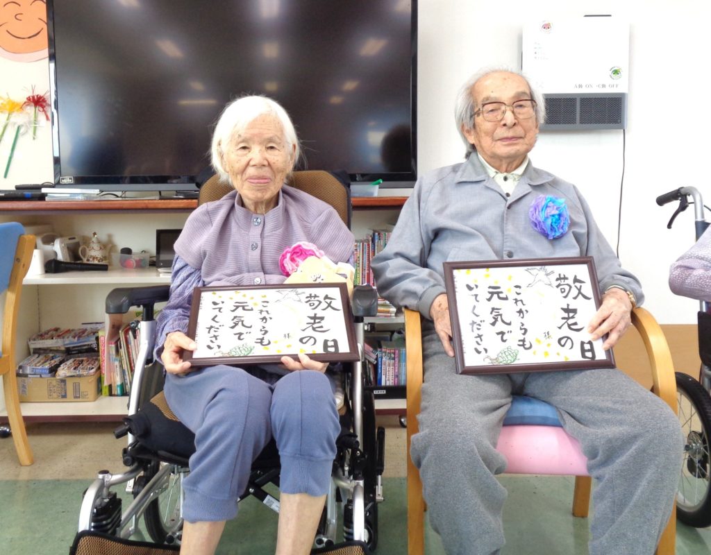 みなさんを代表して100歳、105歳のご夫婦・100歳を10月に迎えられる利用者様に賞状をお渡ししました☺