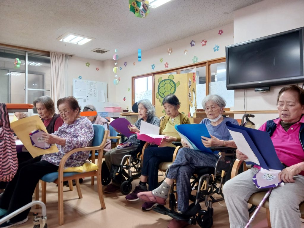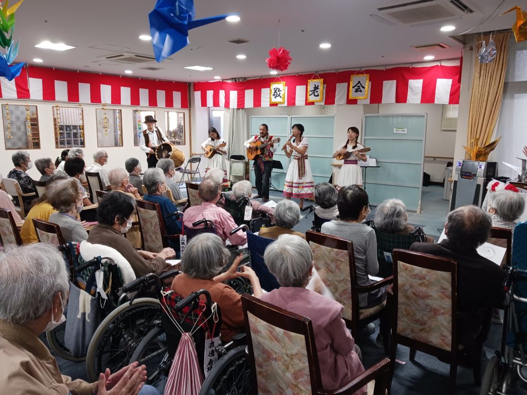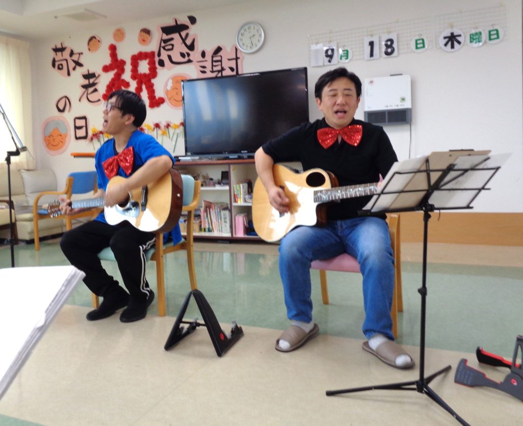 ギターの先生と一緒に職員も参加して演奏して、利用者様は拍手をしたり、歌を歌ったりしておられました!