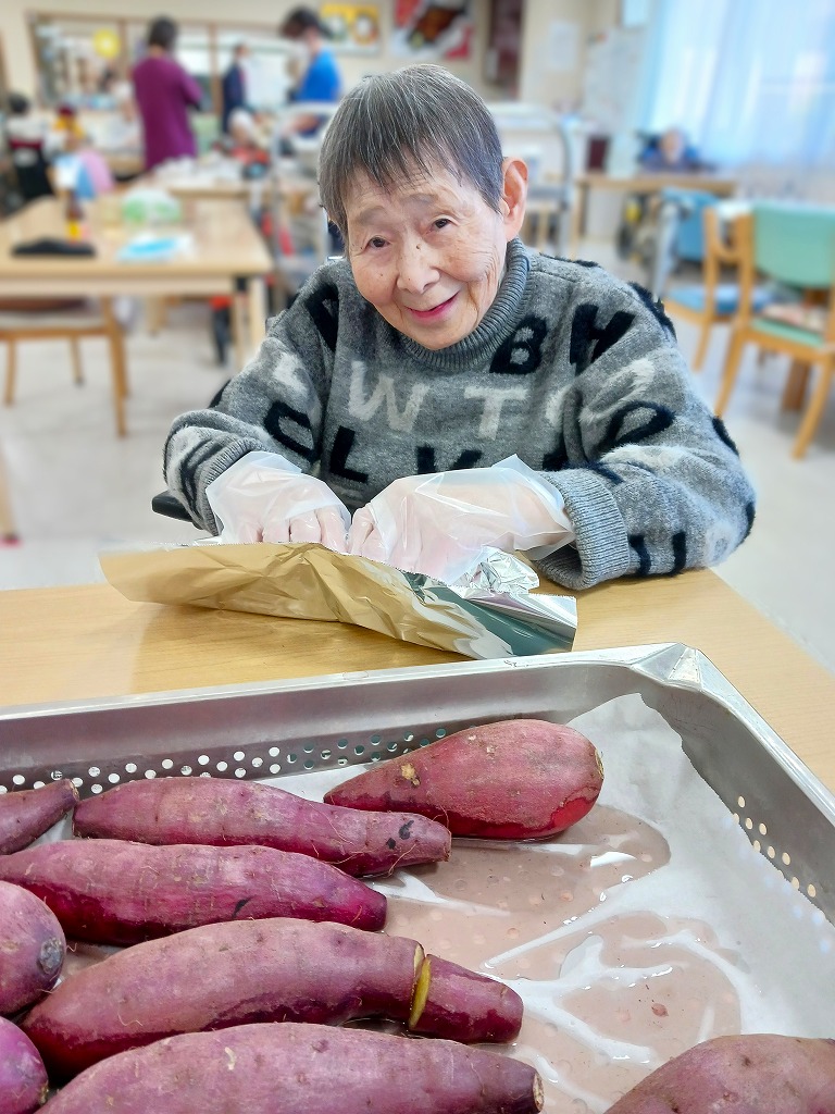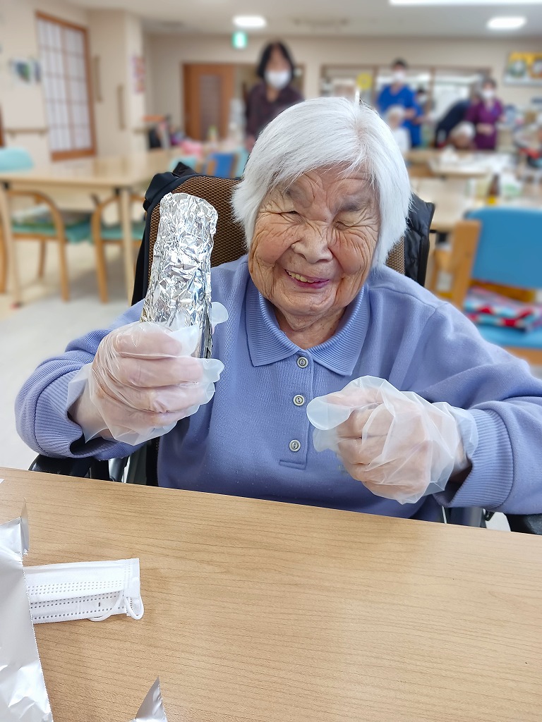 10月29日(水)、ケアライフ山口駐車場にて焼き芋会が行われました。
