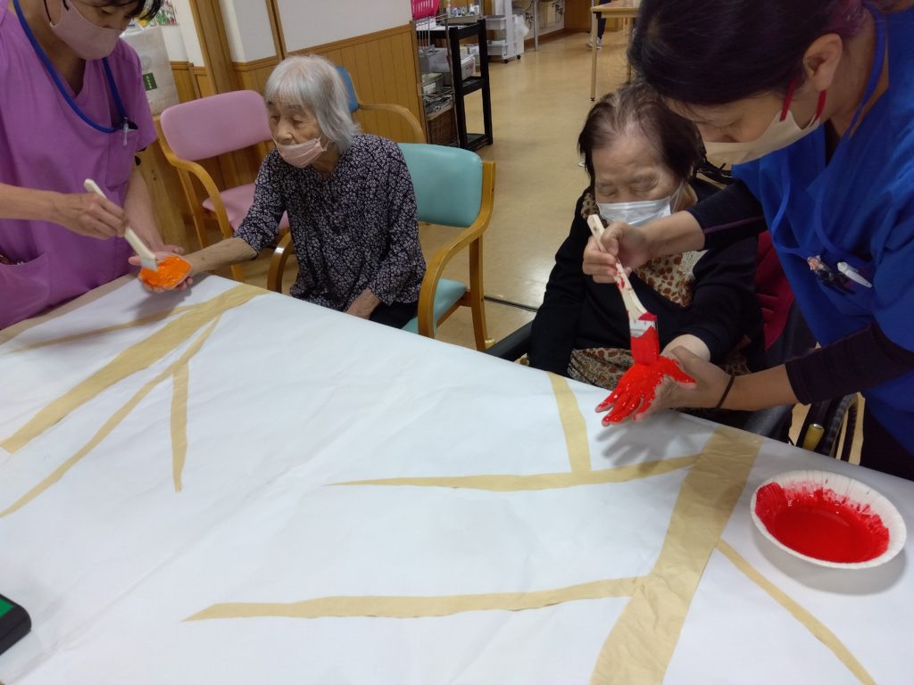 秋に向けて紅葉の壁画を作成しました!(≧∇≦)ノ