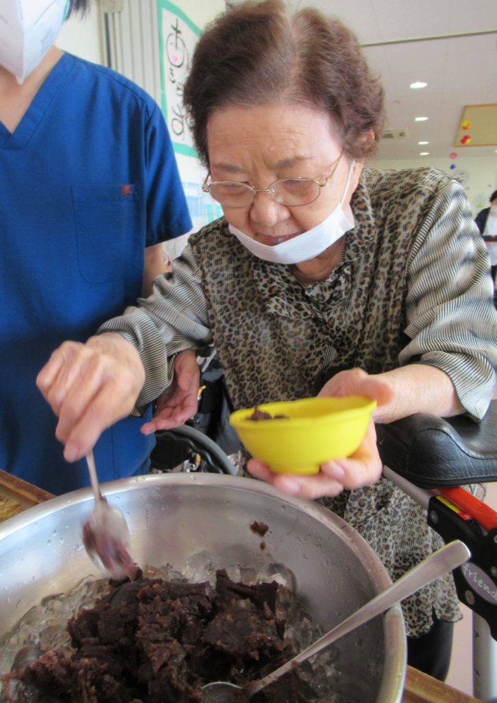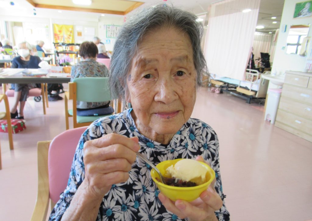 8月のおやつレクは、冷やしぜんざいアイス🍨!