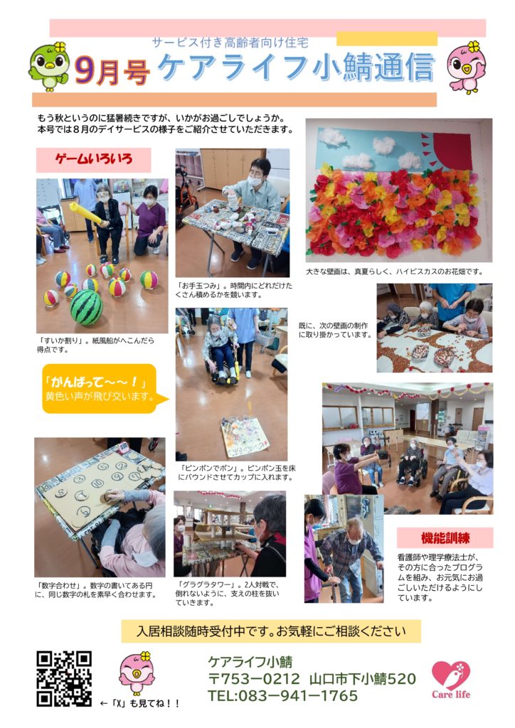 ケアライフ小鯖の施設新聞【9月号】をアップ致します!