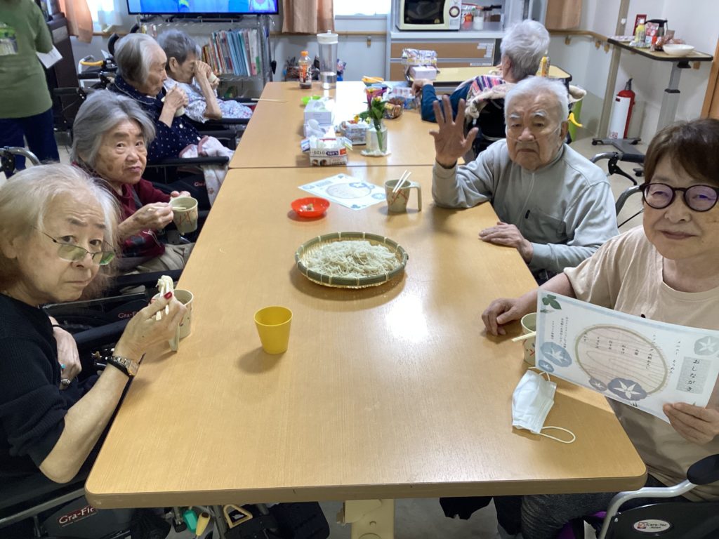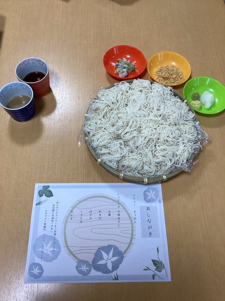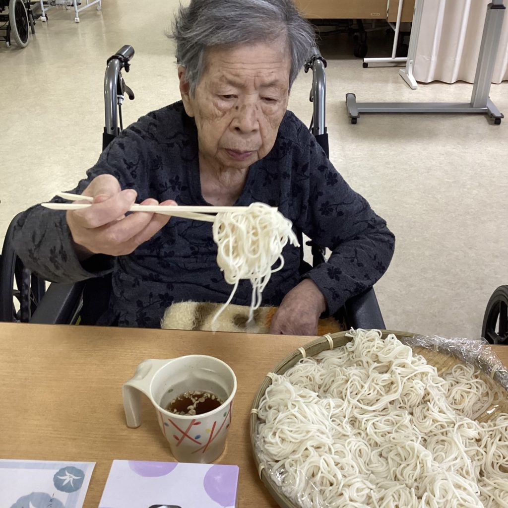 たくさん用意したそうめんが光の速さで減っていき、職員一同とても驚きました(笑)そうめんがお好きな利用者様が多く、皆様のとても満足そうな様子が見られました❤️