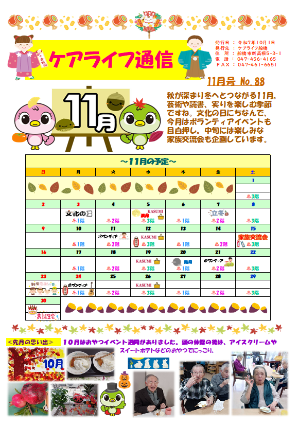 ケアライフ船橋🍏11月ケアライフ通信