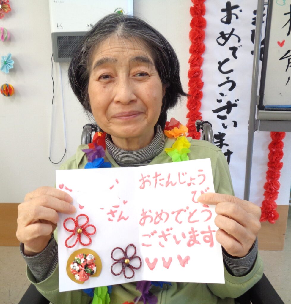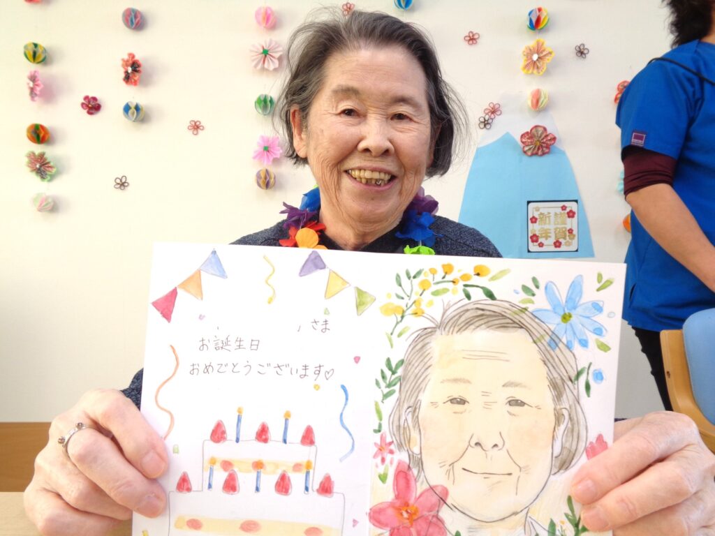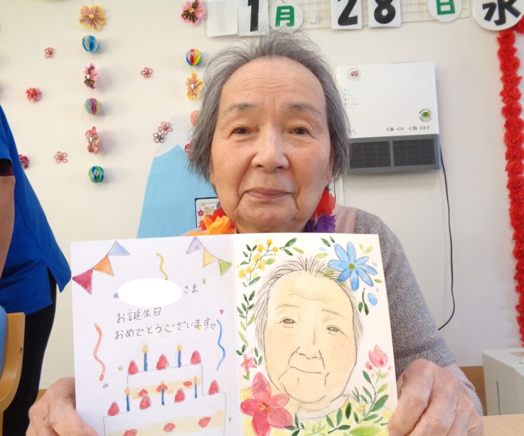 職員が書いた似顔絵付きのバースデーカードをお渡ししました!