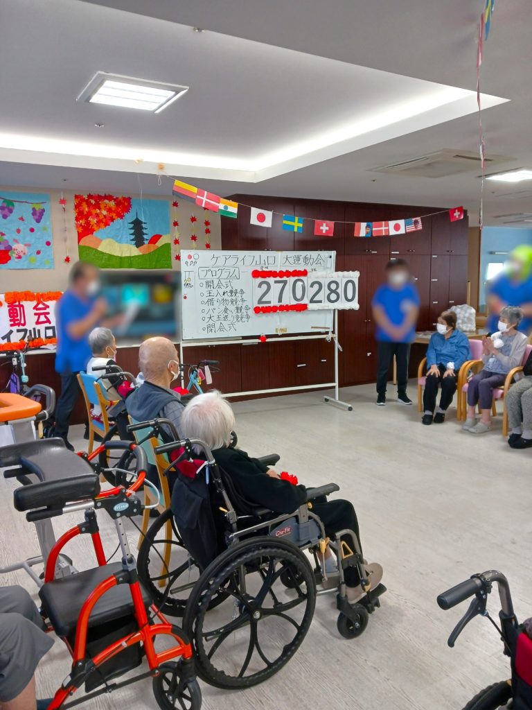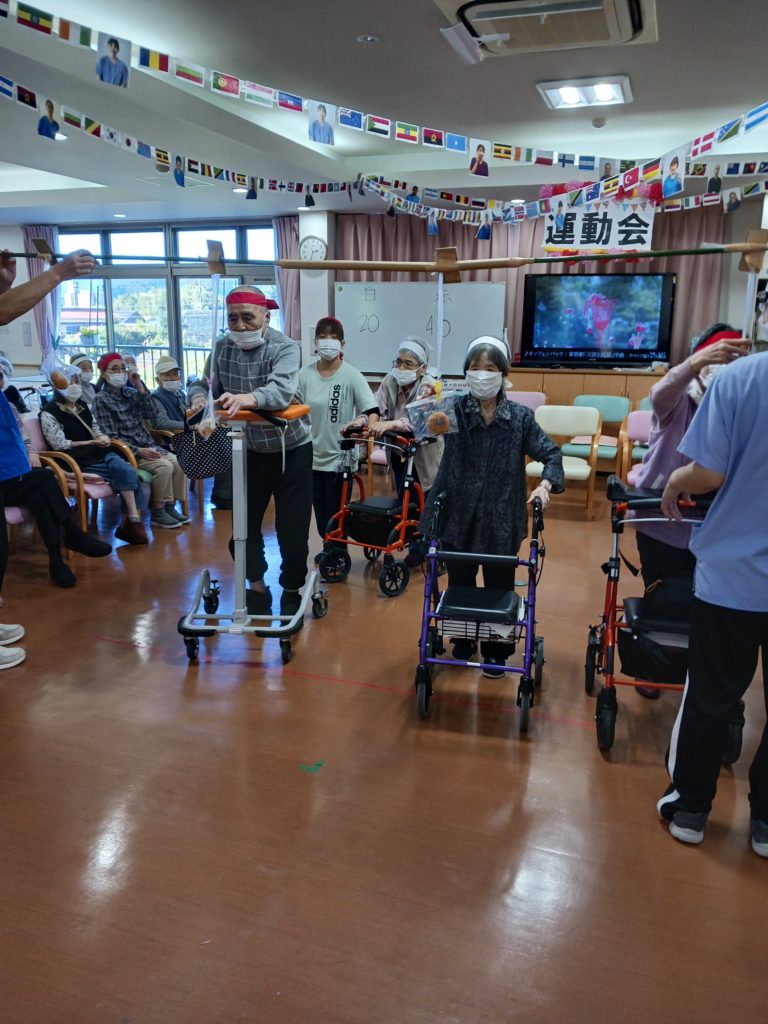 10月10日(金)、ケアライフ山口デイルームにて運動会が行われました。