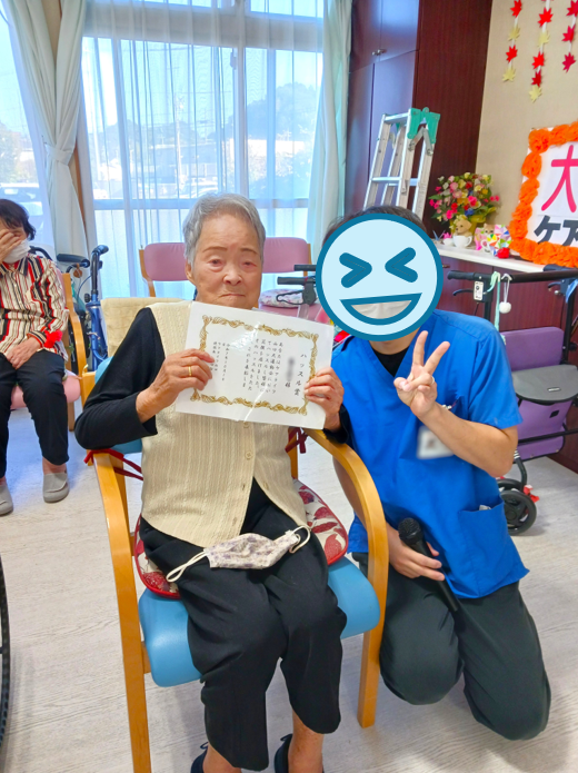 また、特に運動会に励んで下さった利用者様へ特別賞『ハッスル賞』が贈られました^^