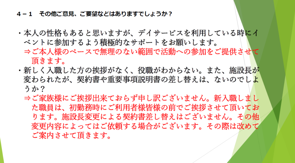 2年目の施設で至らぬ点が多々あるかと存じますが、皆さまからいただいたご意見やご要望をもとに、よりよい施設運営に努めて参りますので、今後ともよろしくお願いいたします。