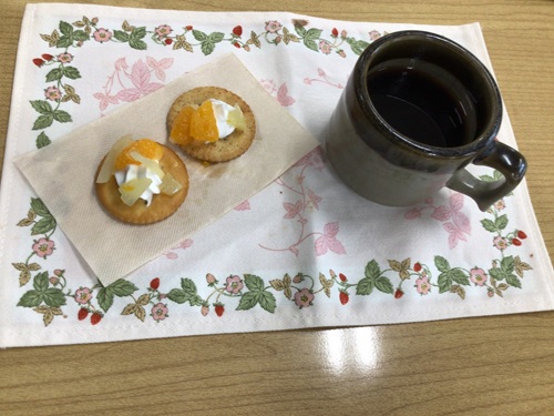 サクサクのクラッカーに甘い果物をのせた手作りおやつは大好評!!
