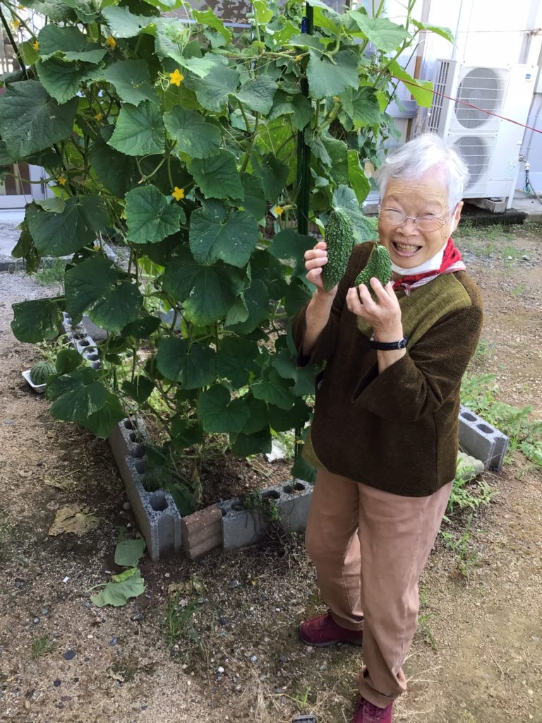 裏庭の畑でゴーヤときゅうりが収穫できました~😆
