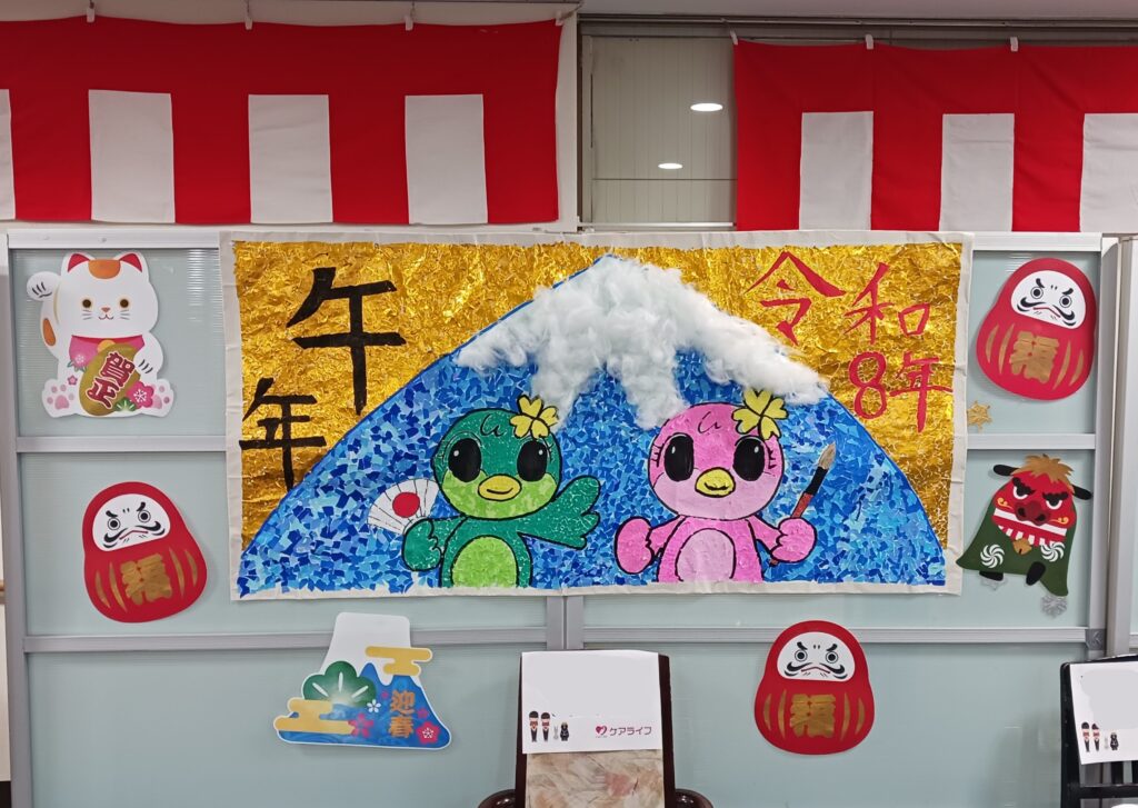 午年にちなんで、職員と利用者様が協力して、とてもキュートで素敵な作品ができました。