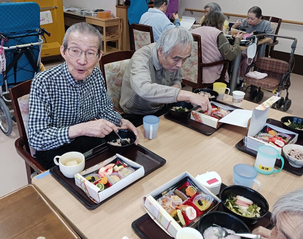 普段はお部屋で召し上がってる方も、食堂の皆様とお食事できて、大喜びです。