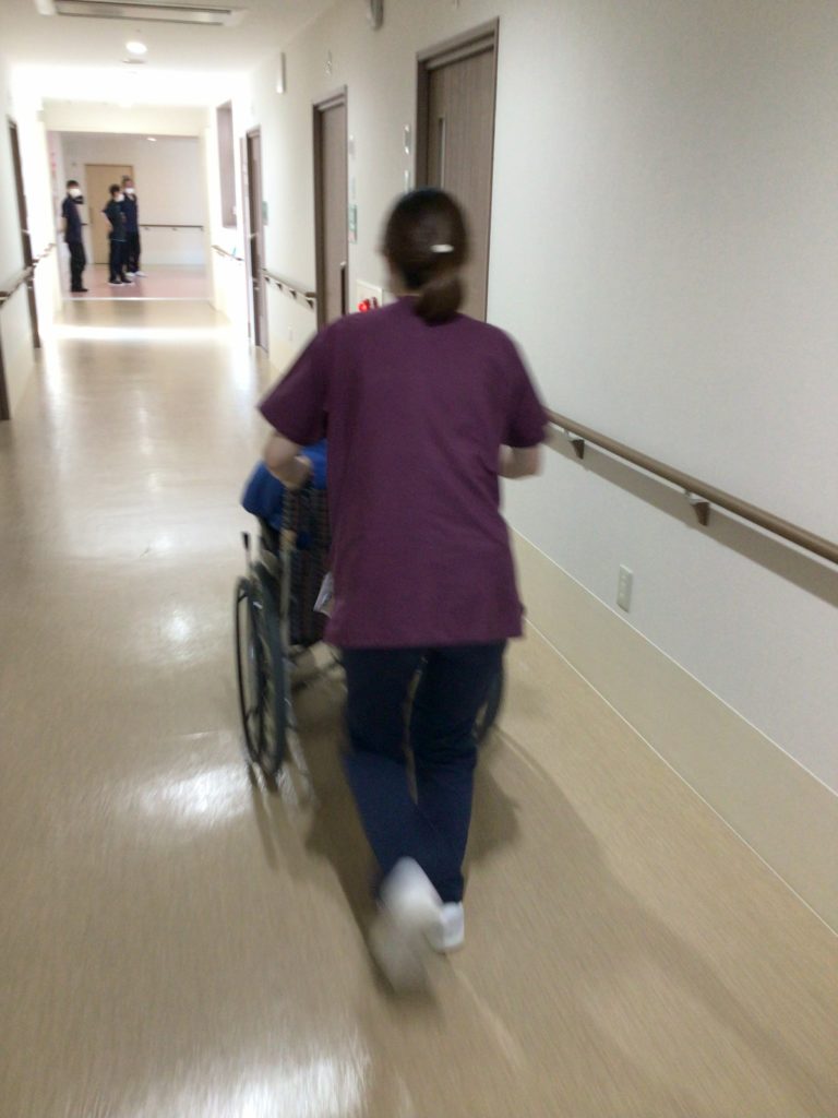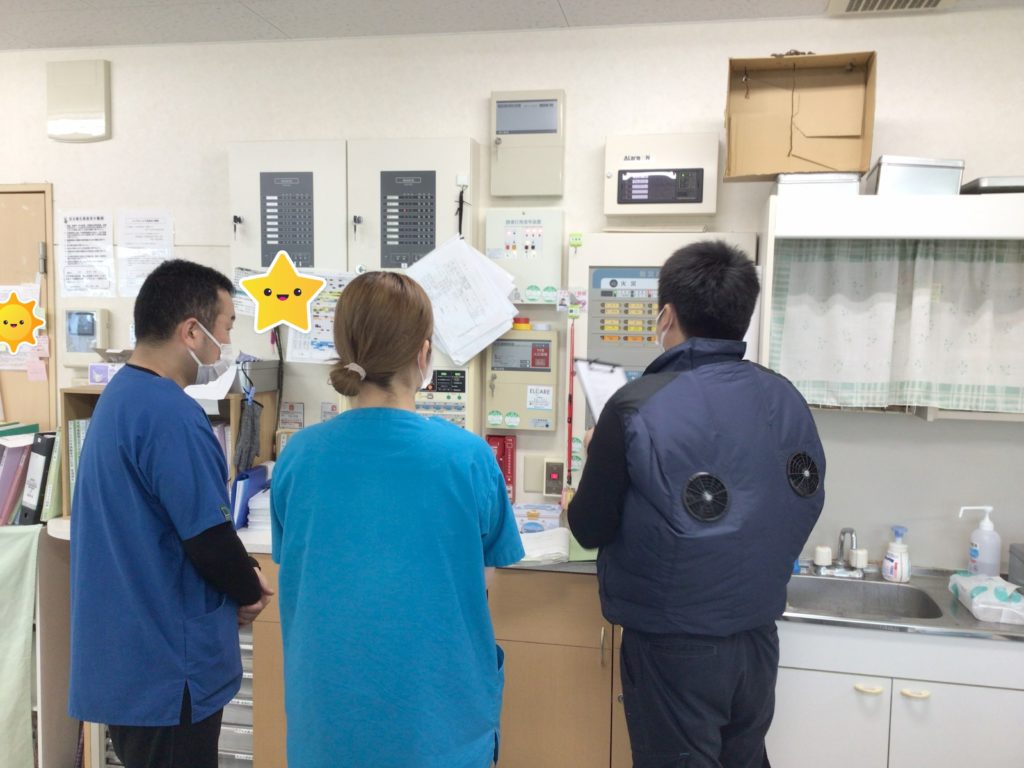 夜勤に入る職員が主流となり、流れを確認しながら実施。