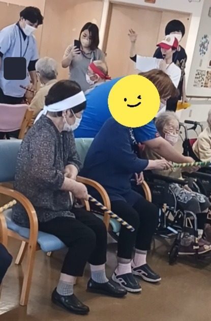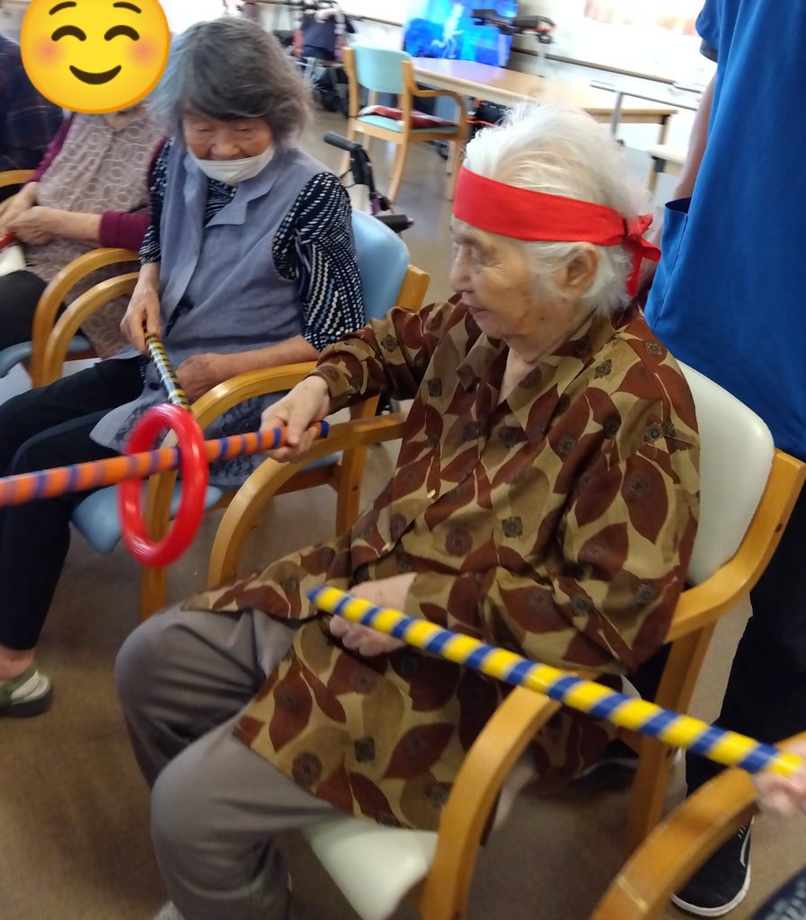競技はデイサービスで行った内容と同じです!ハチマキもつけて気合たっぷり!