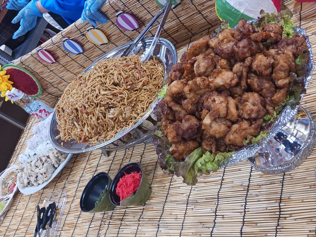 お昼ごはんに厨房さんがおにぎり、やきそば、からあげ、フルーツポンチをバイキング形式で提供してくださいました🍙