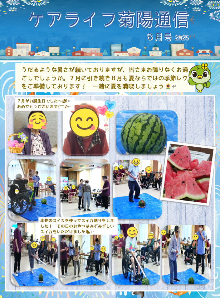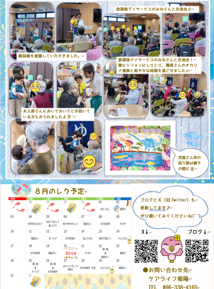 施設通信8月号発刊いたしましたのでご覧ください~~~(*^^*)