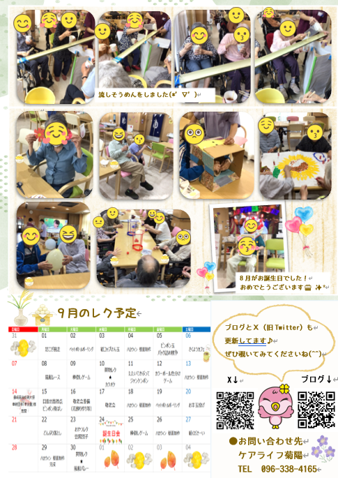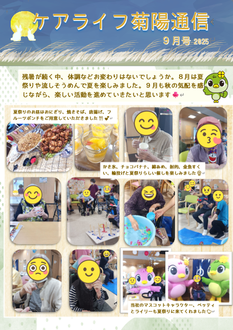 施設通信9月号発刊いたしましたのでぜひご覧ください(*^^)v