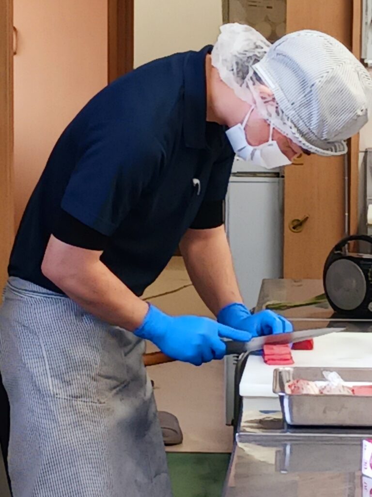 お昼前から厨房では、スタッフが真剣な表情でお刺身を捌く音が響いていました。
