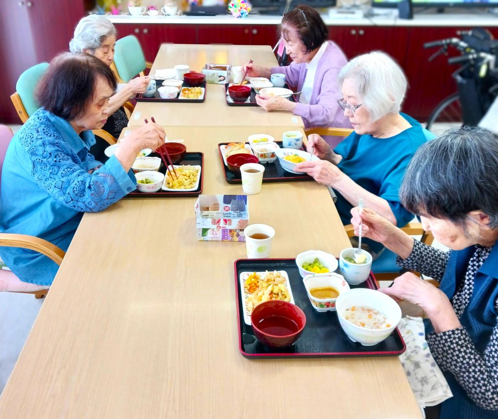 お昼ご飯は敬老会特別仕様!豪華なお膳風ごはんに皆さん嬉しそうな表情(^^♪
