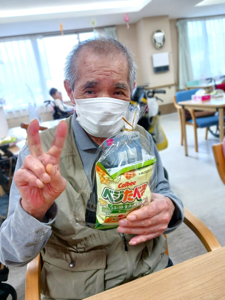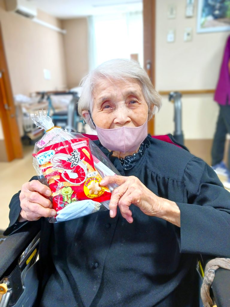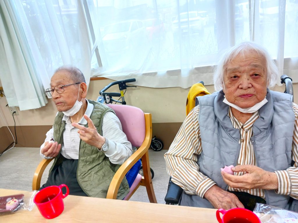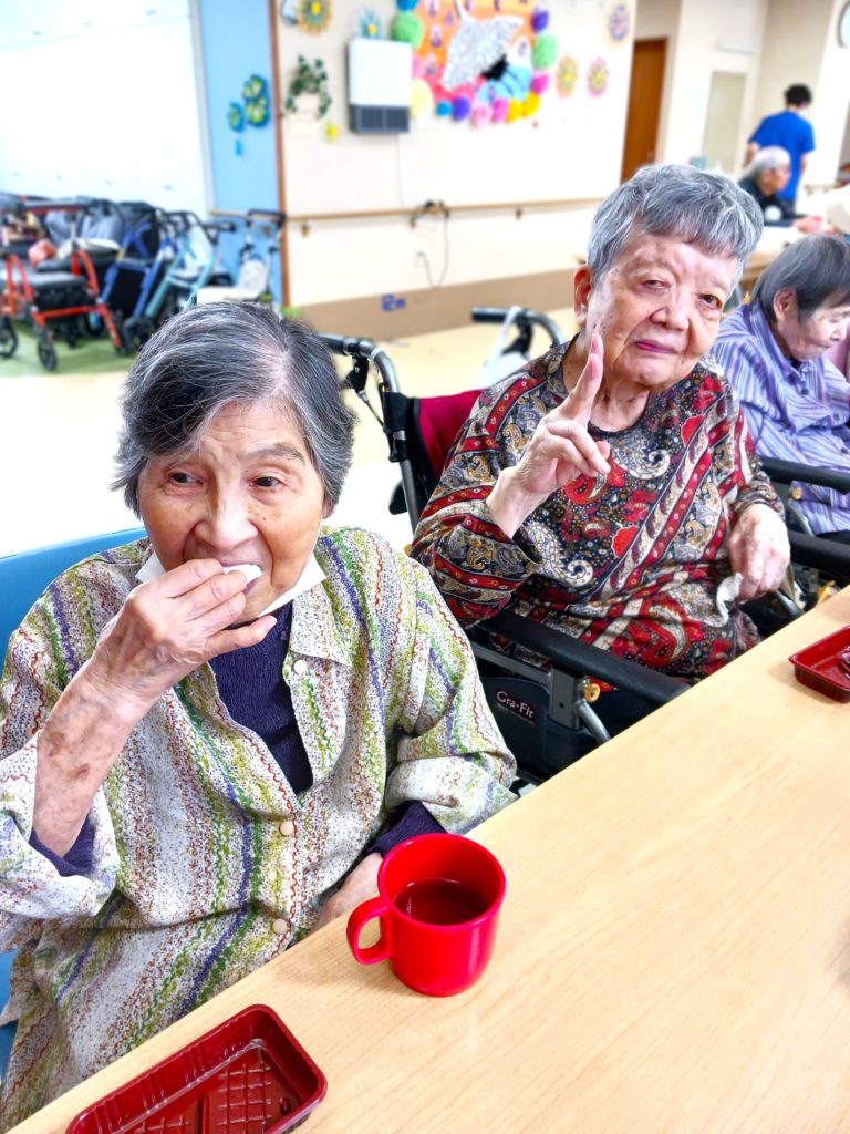 おやつは祝敬老☆紅白饅頭。片手で食べやすいサイズです^^